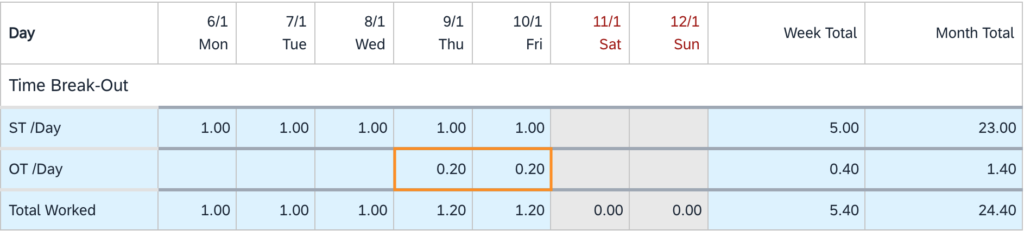 - 1.4 days of Overtime (OT)